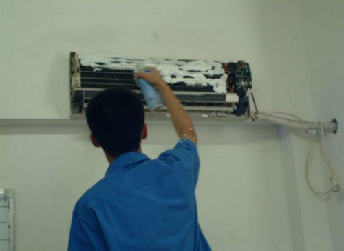 | 右江空调维修师傅给右江用户上门维修清洗空调。 |